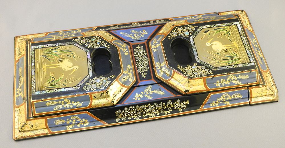 LOT 118 Japanese Lacquered Book Slide, 24" Extended x 6 3/4". Estimate: $175 - $225 Sold For: $160 Auction Date: Tuesday, December 13 2022 at 6:00 PM