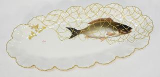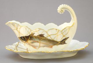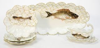 4 Limoges Fish Plates with Gravy Boat & Platter, 23" Wide.