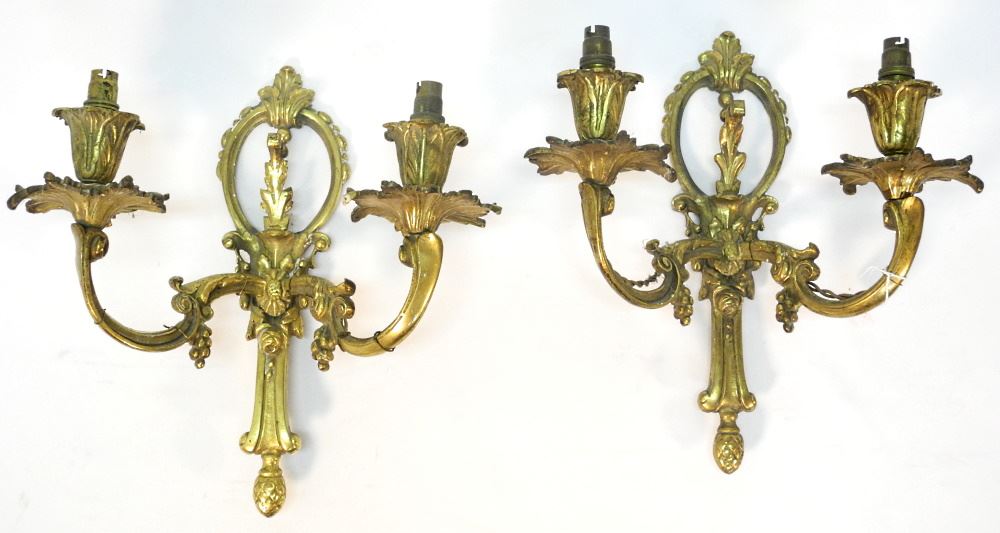 Two Pair of Louis XVI Cast Brass Sconces, 12 3/4" x 12" x 6 1/2".