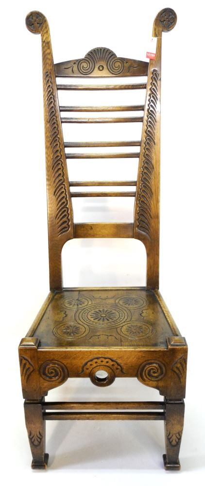 LOT 3 Northern European Carved Oak Ladder Back Chair, 55 3/4". Estimate: $200 - $300 Auction Date: Tuesday, December 13 2022 at 6:00 PM