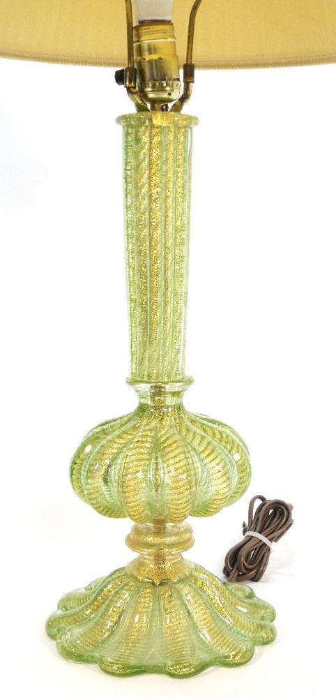 Pair of Green Murano Glass Table Lamps, TH:30 3/4.