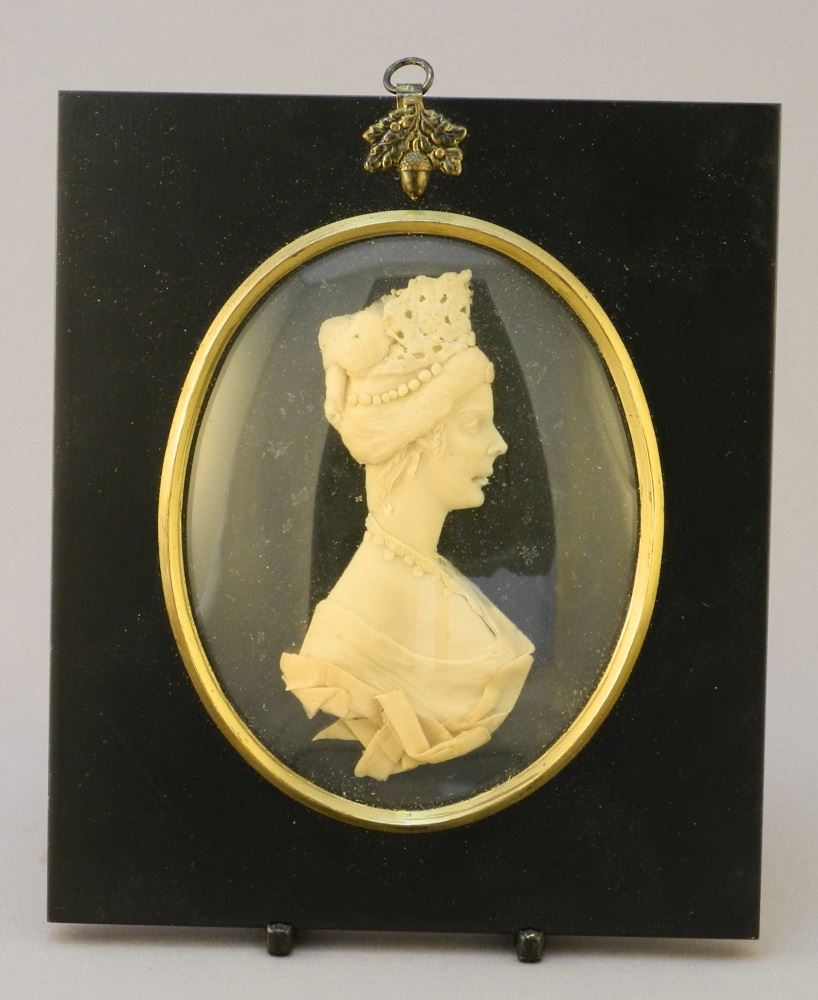 Pair of Wax Relief Portraits Attrib. to Leslie Ray, Queen Charlotte & Lord Nelson, Sight 4 3/4"