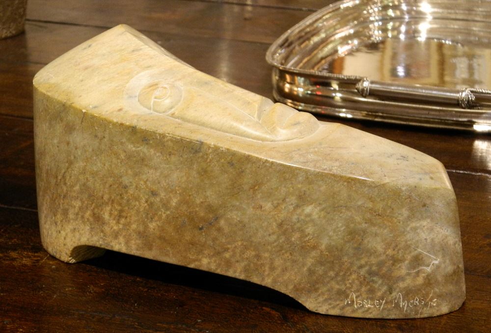 LOT 72 Soapstone Sculpture Signed Morley Myers '15, 6 1/8" x 12 3/4" x 5 3/4" "Zoomorphic Portrait". Estimate: $150 - $200 Sold For: $125 Auction Date: Tuesday, December 13 2022 at 6:00 PM