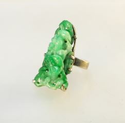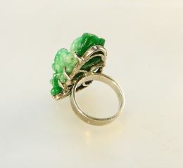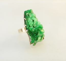 Jade Carving in Unmarked Silver Ring, Size 5 1/2, TW:11.88 Grams.