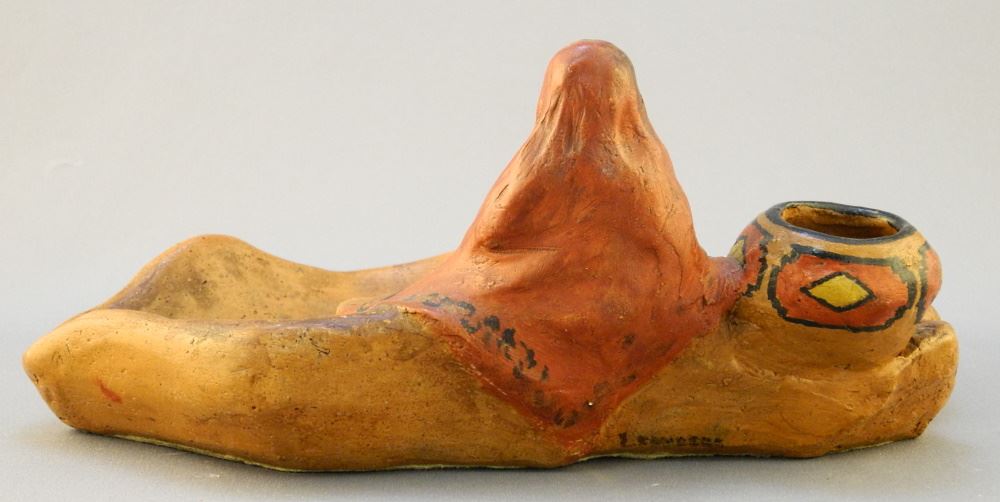 Southwest-Style Pottery Figural Dish, Signed Indistinctly, 4 x 9 x 5 5/8"