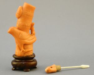 LOT 98 Coral Snuff Bottle with Stand, TH:3", No Export. Estimate: $300 - $400 Sold For: $300 Auction Date: Tuesday, December 13 2022 at 6:00 PM