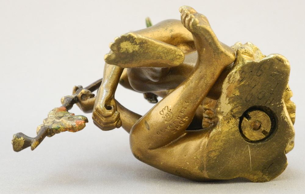 Franz Bergmann Bronze "Pipe Smoker" with Vase Mark, 3 7/8" x 2 1/2" x 3 3/4".
