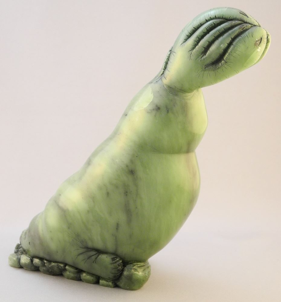 LOT 82 Green Soapstone "Seal" Carving Signed C.(Craig)A. Benson '95 XXVII, 9 1/4" x 4 3/8" x 10". Estimate: $800 - $1,200 Auction Date: Tuesday, February 28 2023 at 4:00 PM