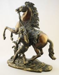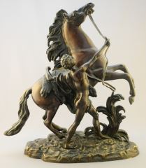 Pair of 19th Century Bronze Marley Horses After Coustou, 15 x 12 1/4 x 5 3/4".