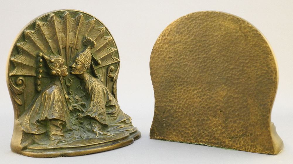 Pair of Patinated "Solid Bronze" Bookends, 4 7/8" High.