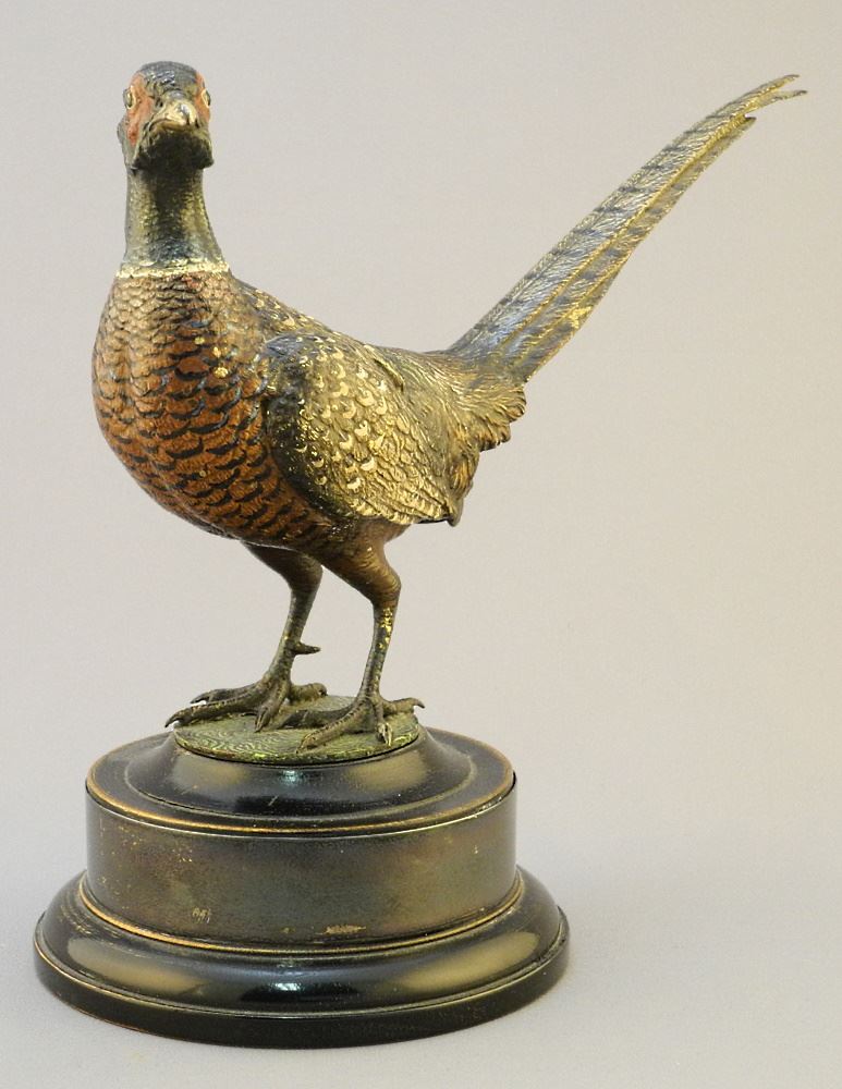 LOT 127 Cold Painted Bronze Pheasant on Hallmarked Silver Base, 8 1/4" x 9" x 5". Estimate: $200 - $300 Sold For: $500 Auction Date: Tuesday, February 28 2023 at 4:00 PM