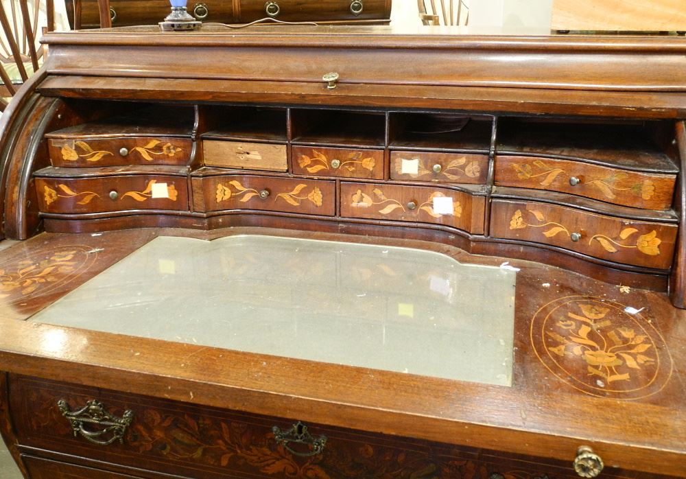 LOT 172 Dutch Marquetry Bureau, 43 1/4" X 45 1/2" X 23". Estimate: $300 - $500 Sold For: $1,200 Auction Date: Tuesday, February 28 2023 at 4:00 PM