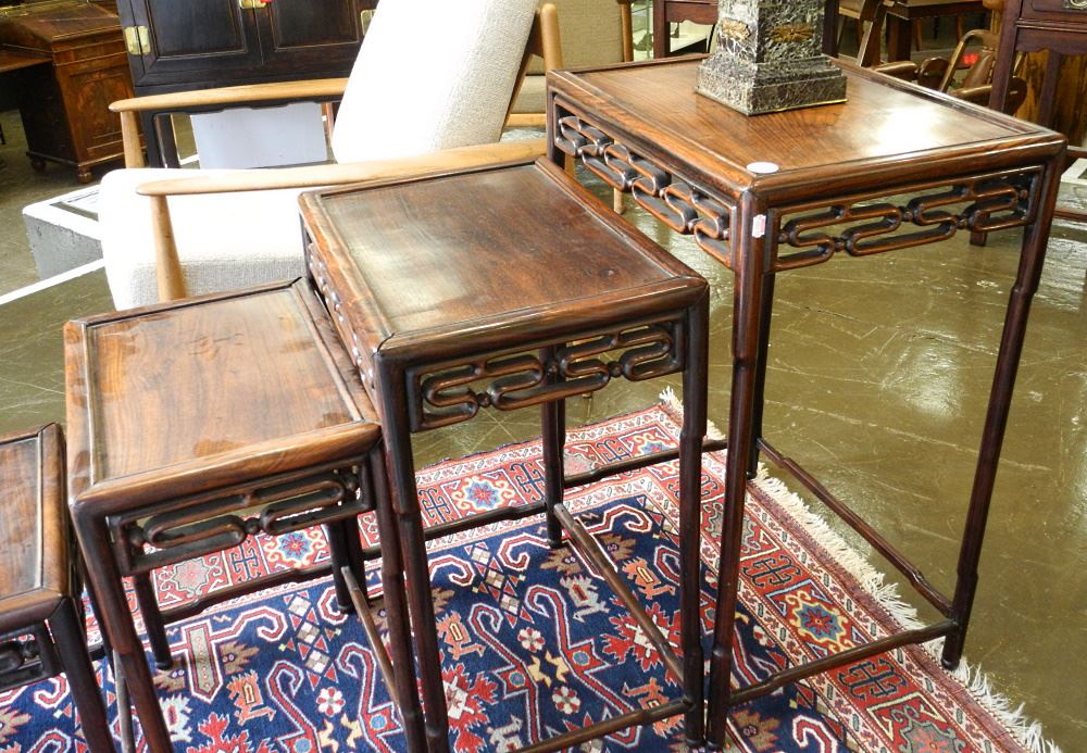 LOT 5 Quartetto Set of Chinese Rosewood nesting Tables, 28 1/4"X 20" X 14 3/8". Estimate: $300 - $400 Sold For: $700 Auction Date: Tuesday, February 28 2023 at 4:00 PM