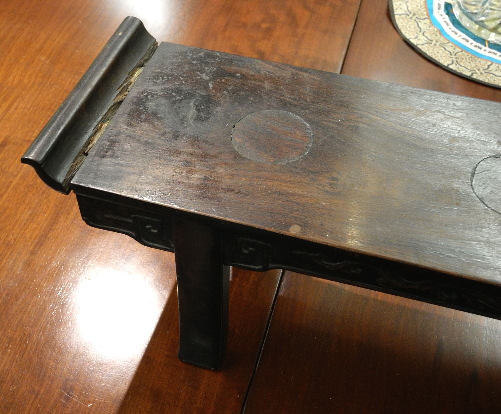 Chinese Rosewood Long Table with Inset Circular Sections, Condition Noted, 7" X 32 1/4" X 6".