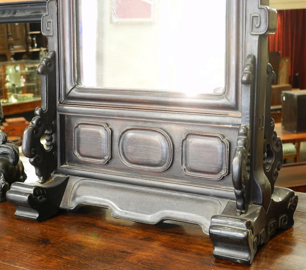 19th Century Chinese Rosewood Table Mirror, 27 3/4"X15 5/8"X7 1/2".