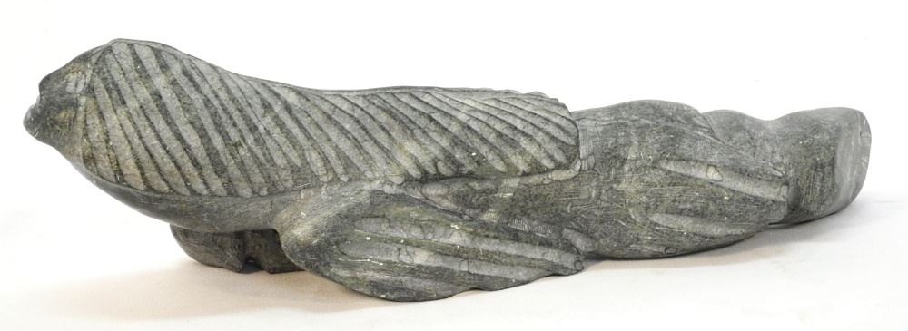 LOT 157 Inuit Stone Carving Signed Arnaluaq with Syllabics, 5 3/8" X 18 3/4 x 4 1/4", "Sedna". Estimate: $400 - $600 Auction Date: Tuesday, February 28 2023 at 4:00 PM