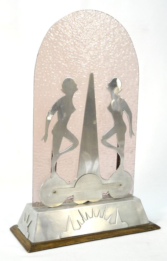 LOT 31 Art Deco Aluminum & Purple Glass Figural Silhouette Lamp, 20 3/8" X 13 1/2"X 5 3/4". Estimate: $150 - $300 Sold For: $350 Auction Date: Tuesday, February 28 2023 at 4:00 PM