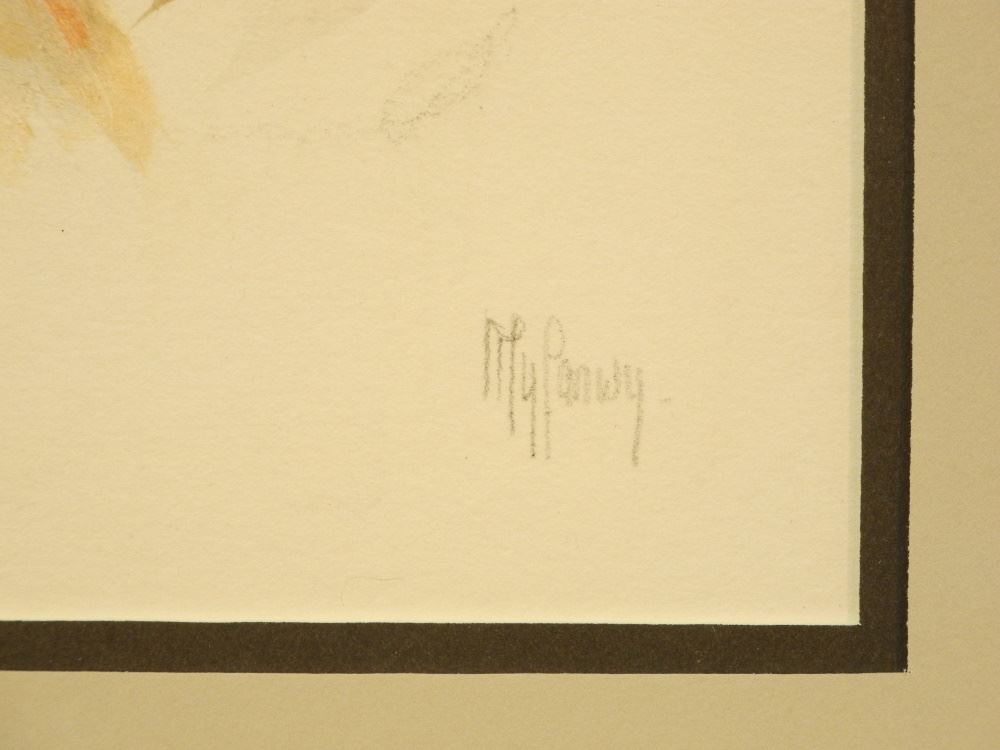Watercolour Signed Myfanwy (Pavelic), 9" x 9 3/8", "Portrait of Catherine Hepburn".