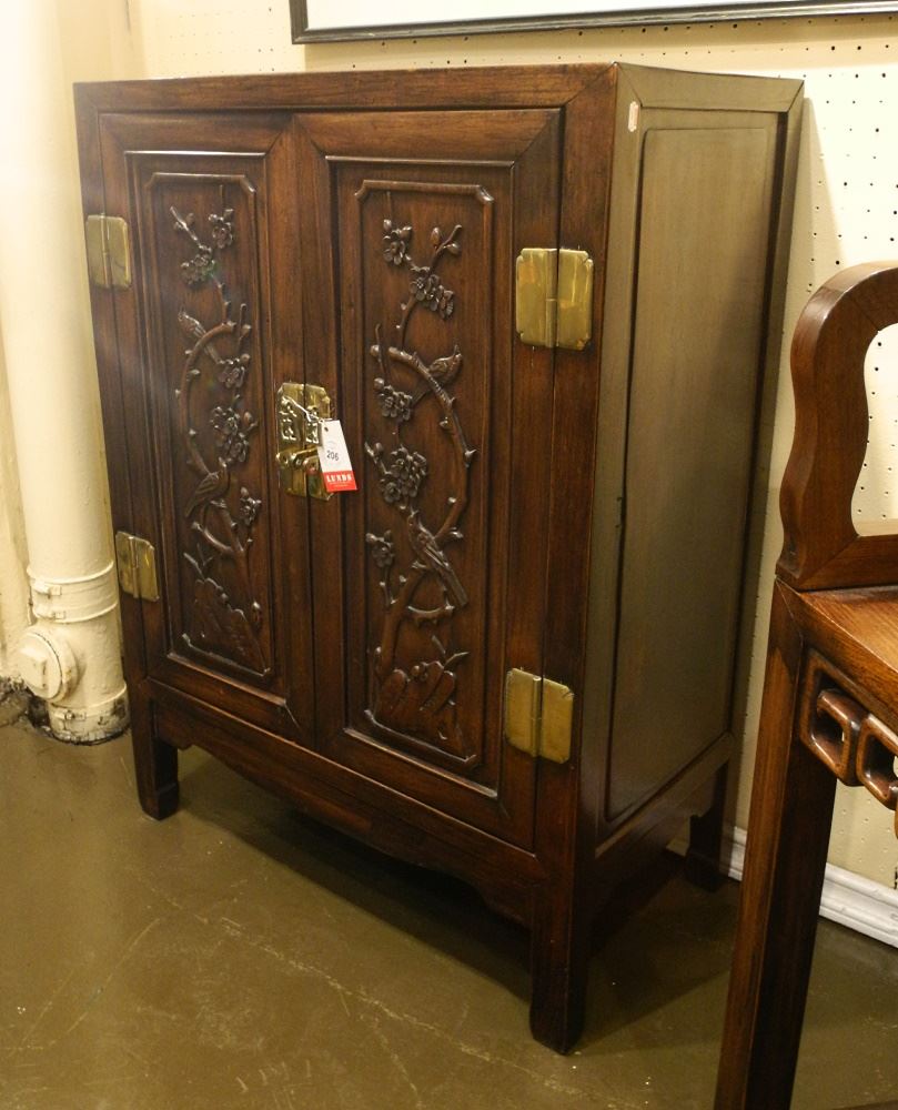 Chinese Rosewood Carved Door Cupboard, 36 1/4" X 26" X 14 7/8".