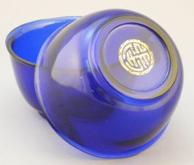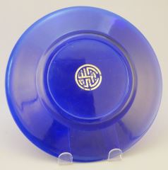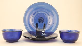Collection of Cobalt Blue Peking Glass Dishes with Gilt Decoration Shou Symbols, 8"d.