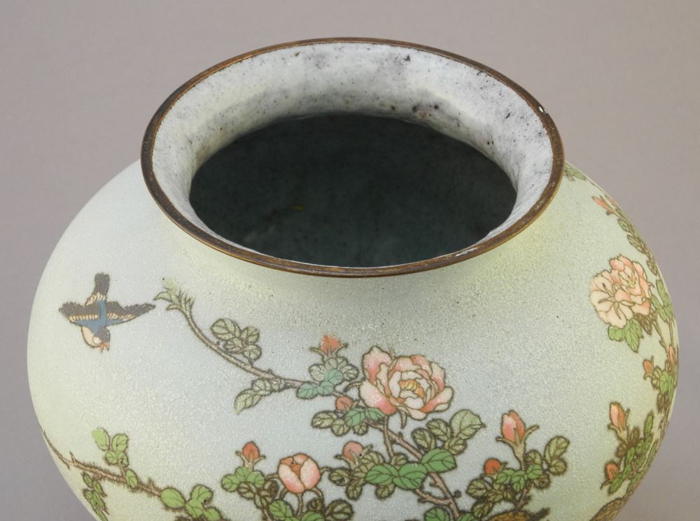 LOT 67 Japanese Cloisonne Vase On Stand, Vase 7". Estimate: $150 - $300 Sold For: $140 Auction Date: Tuesday, April 25 2023 at 4:00 PM