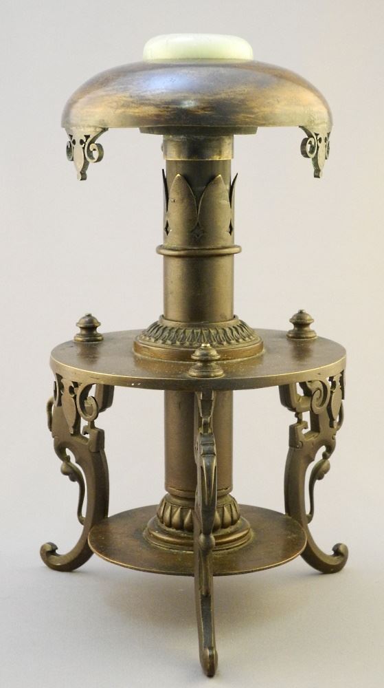 Bronze Hat Stand Inset With Jade Cabochon, 11 1/2" high.