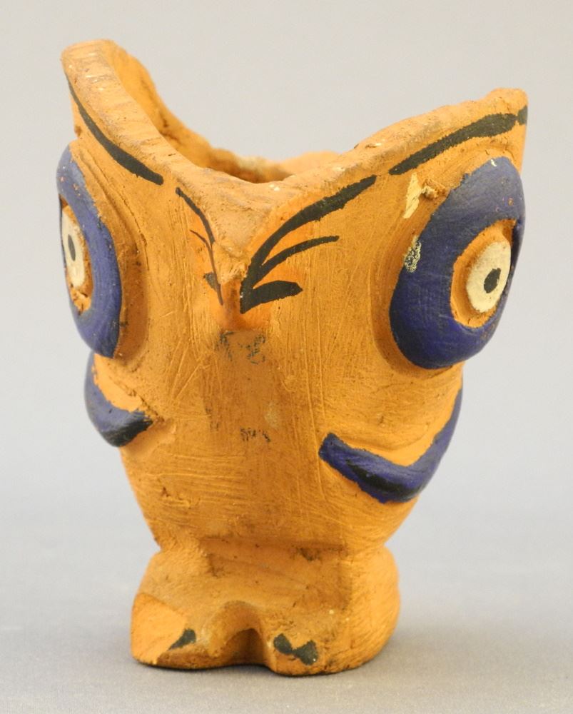 LOT 51 Klee Wyck Style Painted Bird Vessel Attributed to Emily Carr - chipped 2 1/2x1 7/8x2 3/4" Estimate: $500 - $800 Sold For: $400 Auction Date: Tuesday, April 25 2023 at 4:00 PM