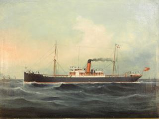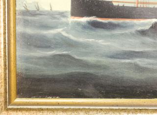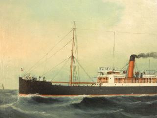 Unsigned Oil Painting (re-lined), 17 3/4" x 23 1/2", "Steam Vessel".
