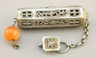 Chinese Silver Alloy Needle Case with Agate Bead, 7".