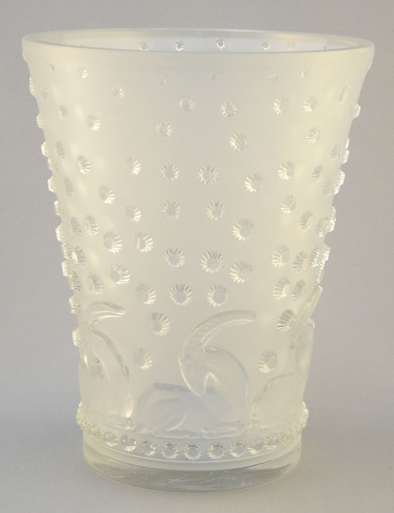 LOT 11 Lalique France Vase, 7 7/8" "Ajaccio". Estimate: $600 - $900 Sold For: $300 Auction Date: Tuesday, April 25 2023 at 4:00 PM