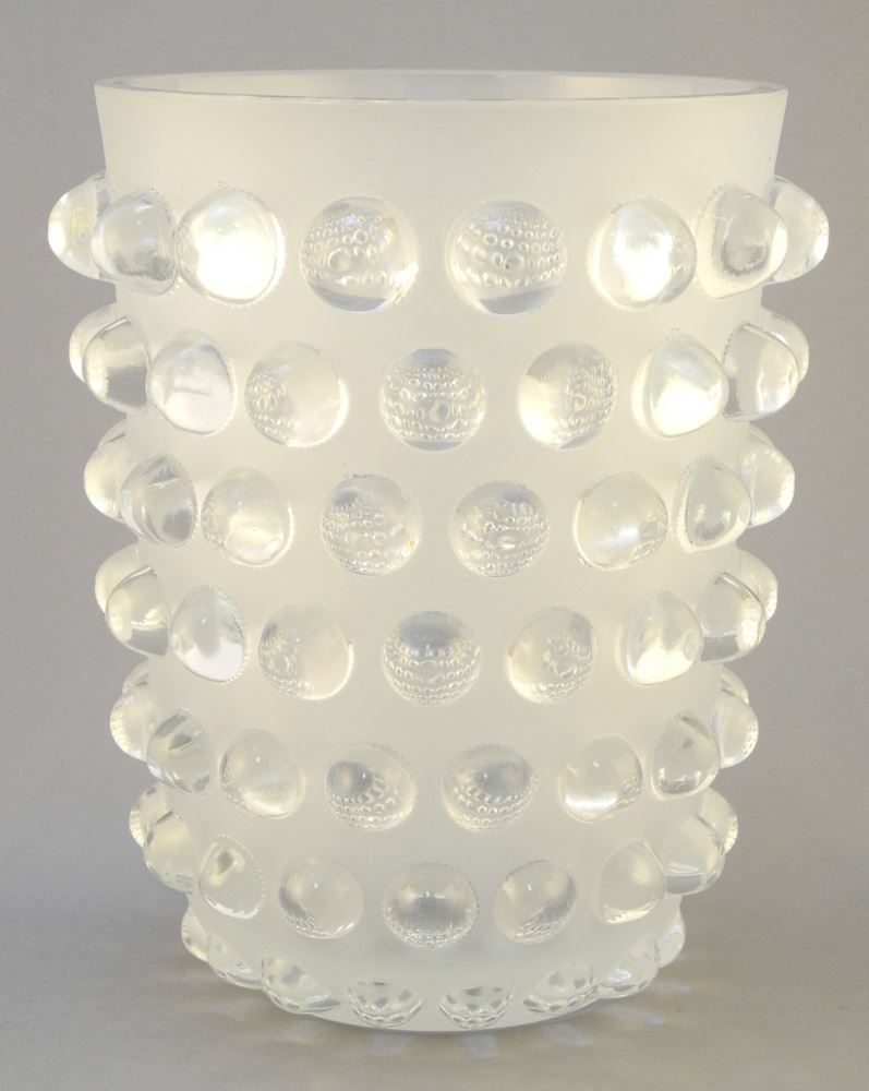 LOT 38 Lalique France Vase, 8 1/4" "Mossi". Estimate: $600 - $900 Sold For: $475 Auction Date: Tuesday, April 25 2023 at 4:00 PM