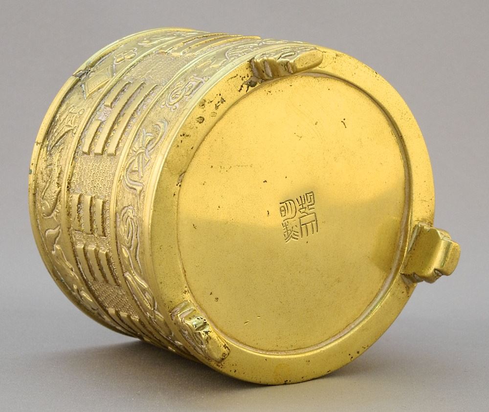 Chinese Bronze Tripod "Bagua" Censer Bearing Hu Wenming Mark, 3 1/4" x 3 1/4"d.