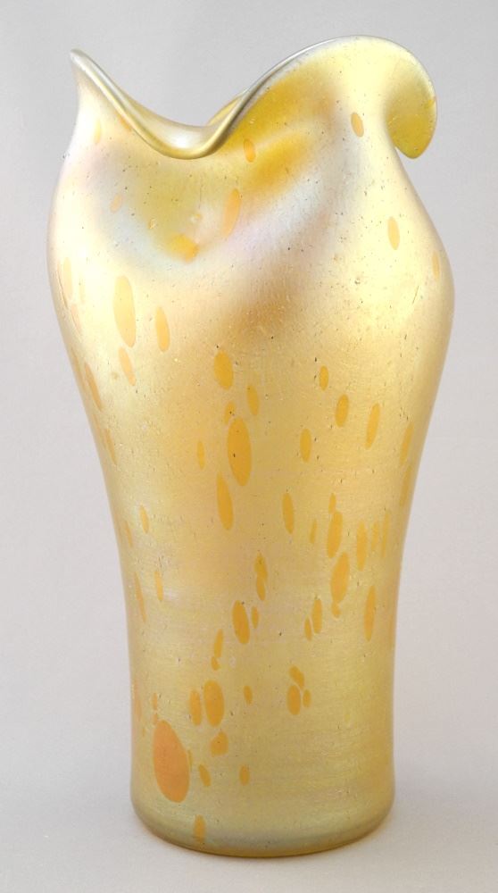 Loetz-Style Iridescent Glass Vase, 11"H.