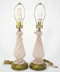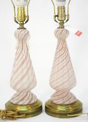 LOT 125 Pair of Pink and White Murano Glass Table Lamps, 25 1/2"H. Estimate: $200 - $300 Sold For: $100 Auction Date: Tuesday, August 29 2023 at 4:00 PM