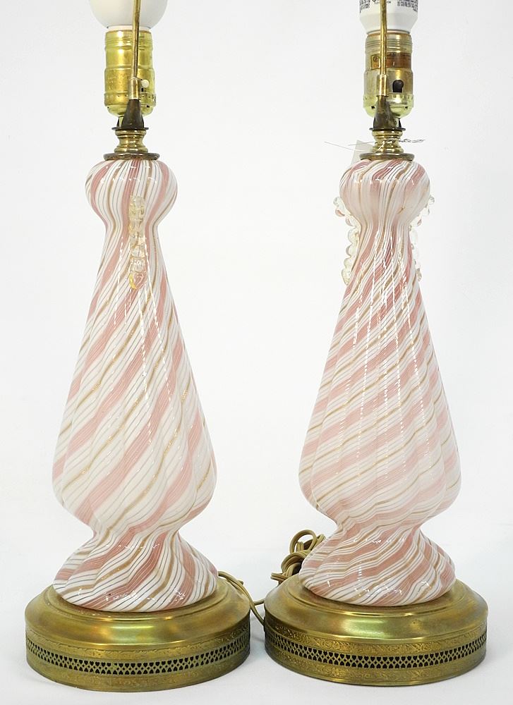 Pair of Pink and White Murano Glass Table Lamps, 25 1/2"H.