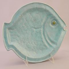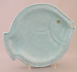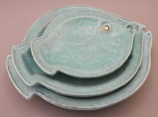 3 Chinese Robin's Egg Blue Graduated Fish Dishes with Impressed Marks, 7 1/2 - 10 7/8" Wid