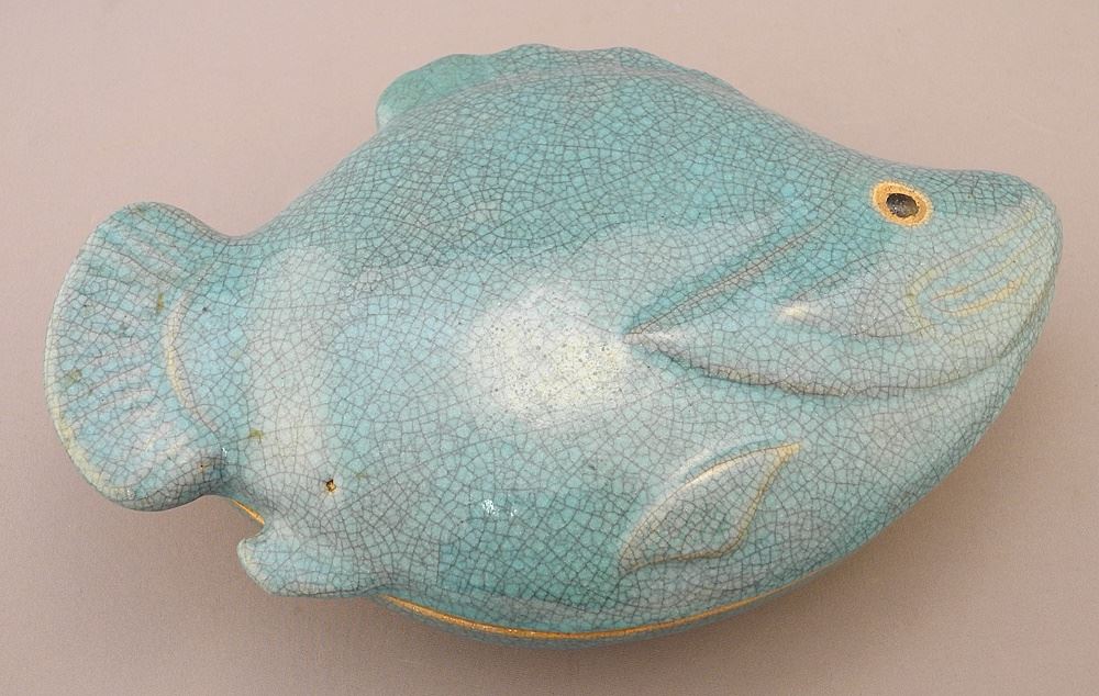 Chinese Robin's Egg Blue Covered Fish Dish, 10" Wide.