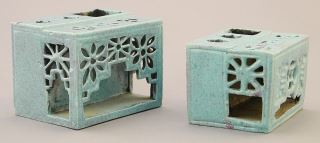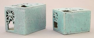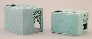 2 Chinese Robin's Egg Blue Brush Washers, 1 7/8" & 1 5/8" High, Crack in Smaller Reservoir Noted