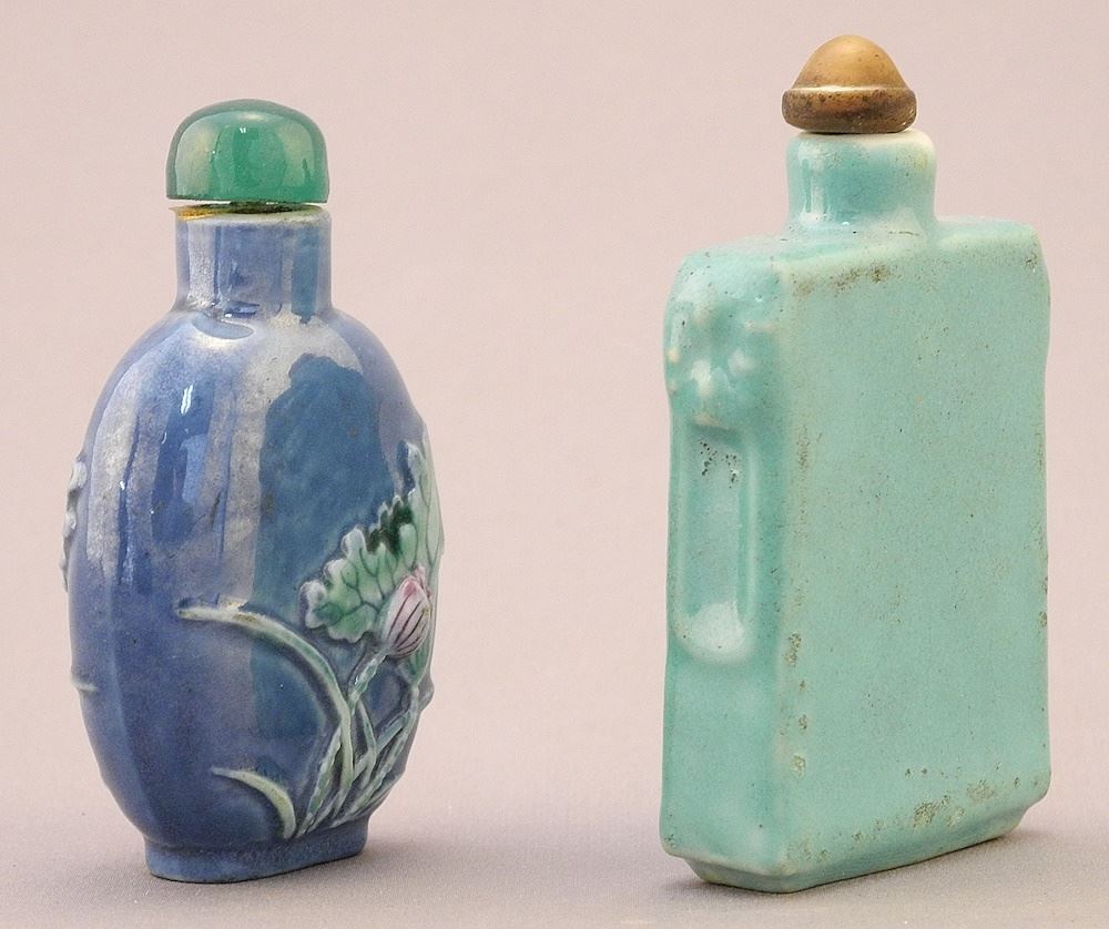 LOT 84 4 Chinese Robin's Egg Blue Snuff Bottles, 2 with Stoppers, 2 1/8" - 3" High Estimate: $250 - $400 Sold For: $350 Auction Date: Tuesday, August 29 2023 at 4:00 PM