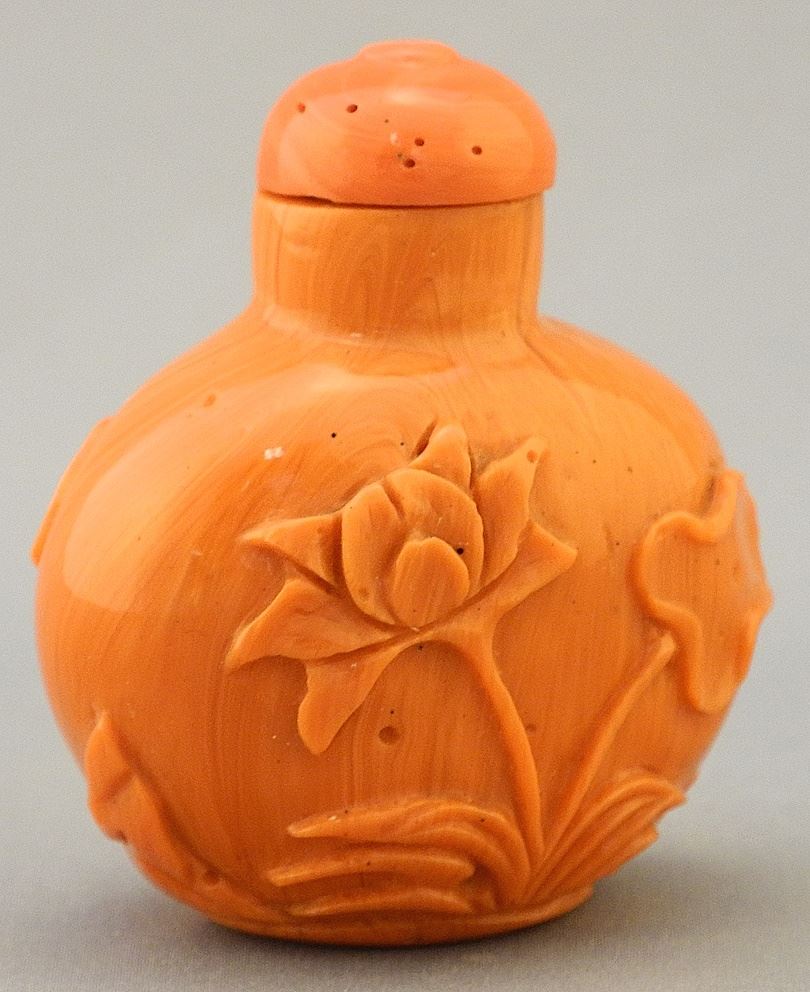 Chinese "Coral" Glass Snuff Bottle, 1 3/4" High