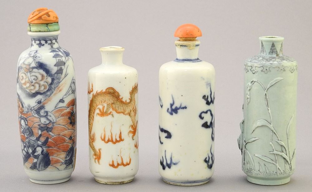 LOT 20 4 Chinese Porcelain Snuff Bottles, 2 15/16" - 3 1/4" High Estimate: $200 - $300 Sold For: $1,900 Auction Date: Tuesday, August 29 2023 at 4:00 PM