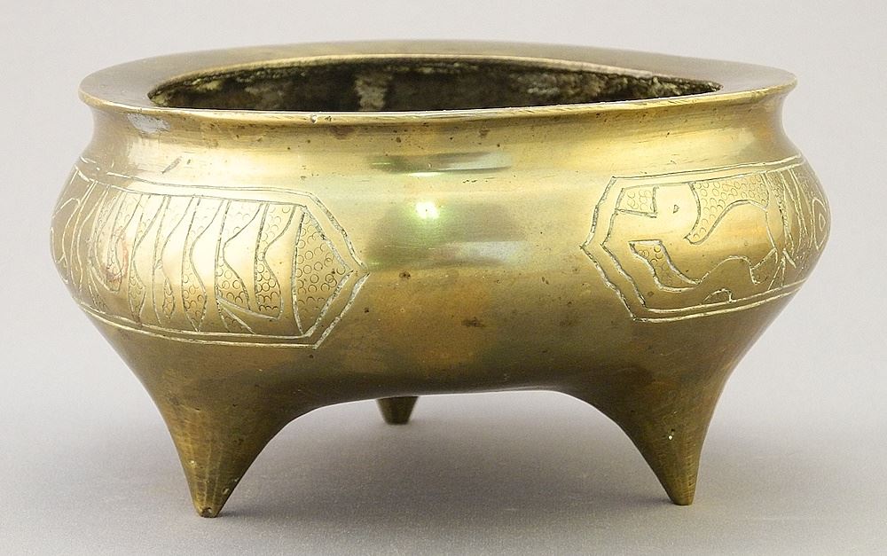 Chinese Persian Market Brass Censer with Xuande Mark, 2 7/8" x 5 1/4"dia 655 grams.