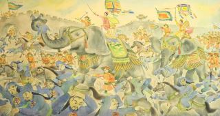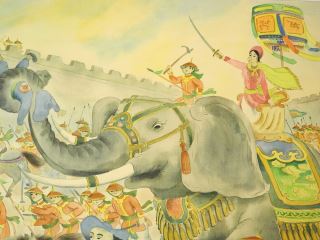 LOT 62 Watercolour on Silk signed Ho Hoang Tai(Hoang Dai Ho), 19 x 36 1/2", "Battle Scene with Elephan Estimate: $2,000 - $3,000 Auction Date: Tuesday, August 29 2023 at 4:00 PM