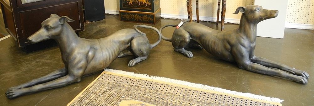 LOT 1 Pair of Bronze Hounds, 50"L. Estimate: $400 - $500 Sold For: $1,000 Auction Date: Tuesday, August 29 2023 at 4:00 PM
