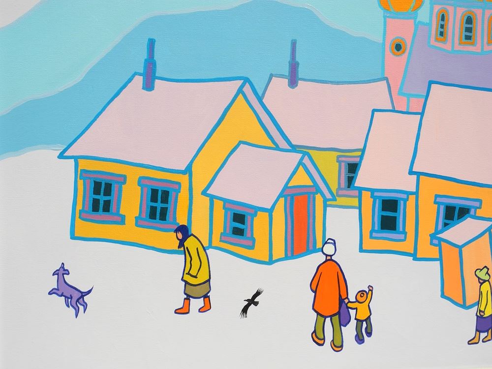 LOT 24 Acrylic on Canvas Signed Ted Harrison '91, 48" x 30", "Alaskan Morning". Estimate: $20,000 - $30,000 Sold For: $19,000 Auction Date: Tuesday, August 29 2023 at 4:00 PM