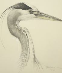 LOT 65 Graphite and Watercolour signed J.F. Landsdowne 1990, "Great Blue Heron". Estimate: $1,250 - $1,750 Auction Date: Tuesday, August 29 2023 at 4:00 PM