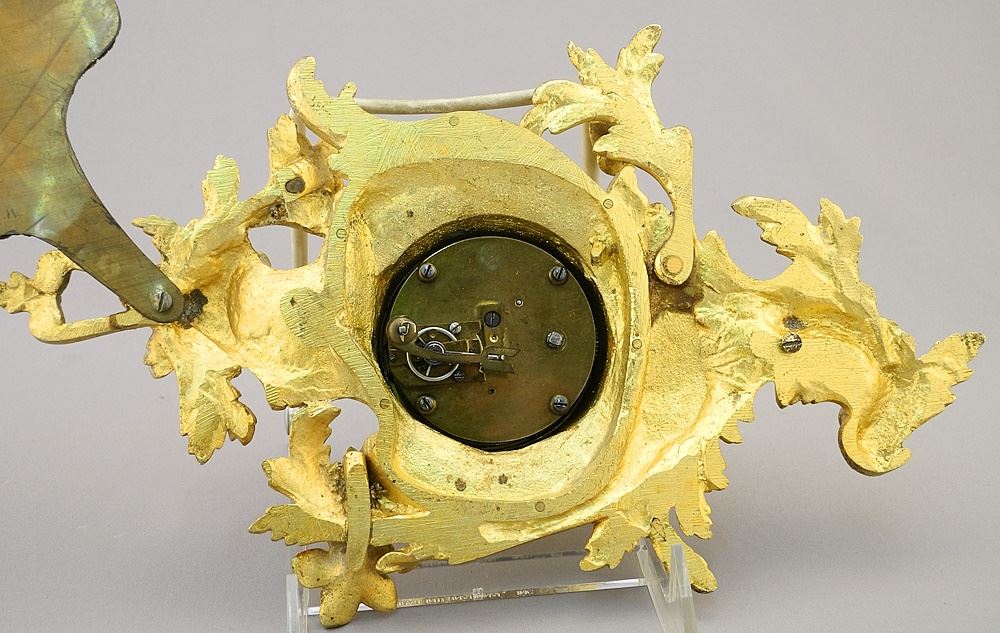 LOT 10 Louis XV Style Gilt Bronze Cartel Clock, 10 1/2" L with 2 1/8" dial - enamel loss. Estimate: $200 - $400 Sold For: $250 Auction Date: Tuesday, August 29 2023 at 4:00 PM