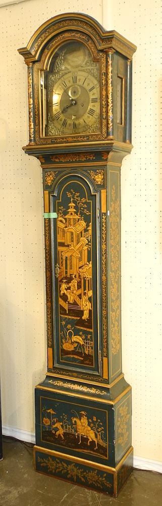 LOT 9 Chinoiserie Tall Case Clock with Weights and Pendulum. Estimate: $600 - $1,000 Sold For: $600 Auction Date: Tuesday, August 29 2023 at 4:00 PM