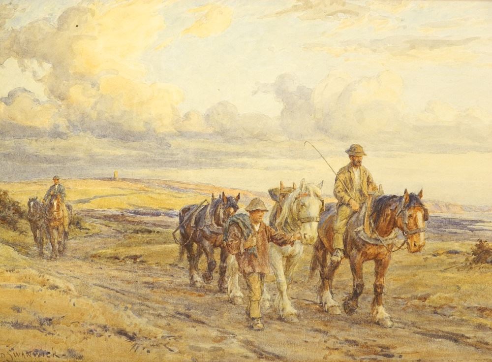 Watercolour signed Harold Swanwick, 7 5/8 x 11 1/2","Returning From Work".