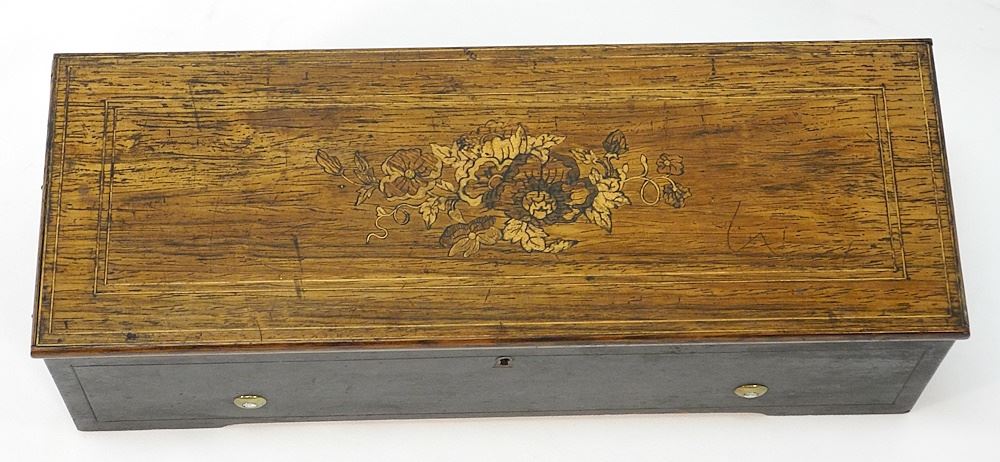 LOT 113 Langdorff Swiss Music Box C.1855 with 10 7/8" Cylinder, 5 x 17 3/4 x 6 3/4". Estimate: $300 - $500 Sold For: $325 Auction Date: Tuesday, August 29 2023 at 4:00 PM